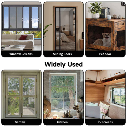 Window Screen Door Repair/Replacement Kit,48" x178" Adjustable Durable Fiberglass Window Screen Mesh,with Spline/Roller/Hook/Clips Screen Door Repair Kit,DIY Window,Porch Sliding Door(Black)