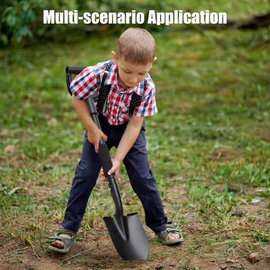 31" Compact Garden Shovel with D-Grip Handle - Rust-Proof Lightweight Metal Tool for Raised Beds, Tight Spaces & Emergency Use (Kids/Adults Friendly), Black