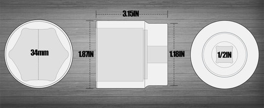SUNHZMCKP 1/2 Inch Drive Impact Socket - Metric 34 mm Deep 6 Point CR-MO Axle Nut Impact Grade for Easy Removal