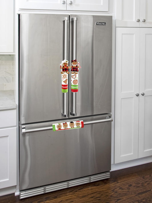 PTFNY 3 Piece Set Christmas Gingerbread Refrigerator Door Handle Covers Appliance Handle Covers Christmas Gingerbread Decorations Fits Standard Size Kitchen Refrigerator Microwave Oven Or Dishwasher