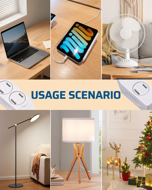DEWENWILS 6FT Extension Cord, 2 Prong Extension Cord 3 Outlet with Dustproof Sliding Covers, SPT-2 AWG16/2 Power Cable for Indoor Use, 13A/125V/1625W, White, ETL Listed, 2 Pack