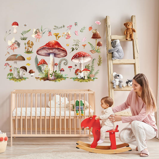 Wxiben Fairy Wall Stickers Decor - Mushroom Wall Decals Flower Wall Sticker Removable Floral Wall Murals Peel and Stick for Girls Kids Bedroom Nursery Playroom Bathroom Living Room Wall Decor