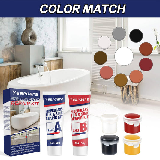 Yeardera Tub Repair Kit, Shower Repair Kit, Super Strong and Waterproof Fiberglass Tub Repair Kit, Sink Repaik Kit for Tub, Tile, Sink, Ceramic, Scratches, Cracks, Chips, Holes on Porcelain and More