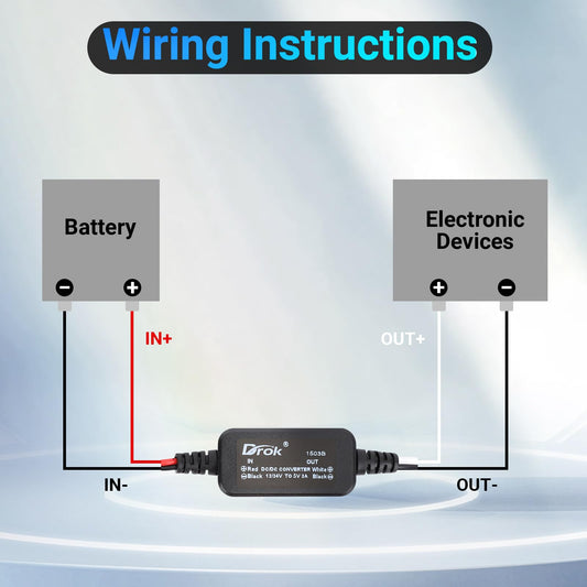 DROK 12V to 5V Converter, DC 8-32V to 5V Buck Converter 12V DC Power Supply 3A, Voltage Regulator for RV Solar Panels