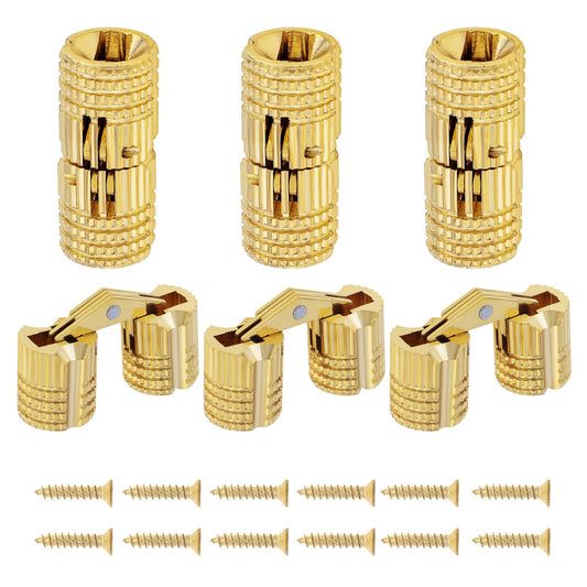 HOJLKLD 6Pcs 8 mm Hidden Brass Barrel Hinges, 180 Degree Opening Angle Concealed Furniture Hinges for DIY Jewelry Box Hand Craft (6, 8mm)