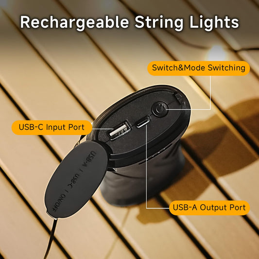 SANBEN Camping String Lights Rechargeable - 33Ft Quick Storage Portable Tent Lights with 6 Modes, Battery Operated Waterproof Hanging LED Lamp for Patio Garden Party Camping Essentials