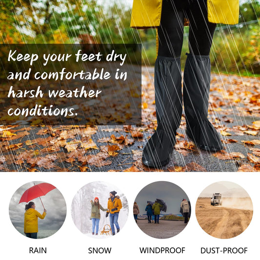 IwIeIaIrI Waterproof Rain Boot Shoe Cover Non-Slip Waterproof Boot Covers for Snow & Rain, Walking, Hiking & Motorcycle Gear Shoe Cover PVC Material with Safety Reflector Reusable & Foldable Black(XL)