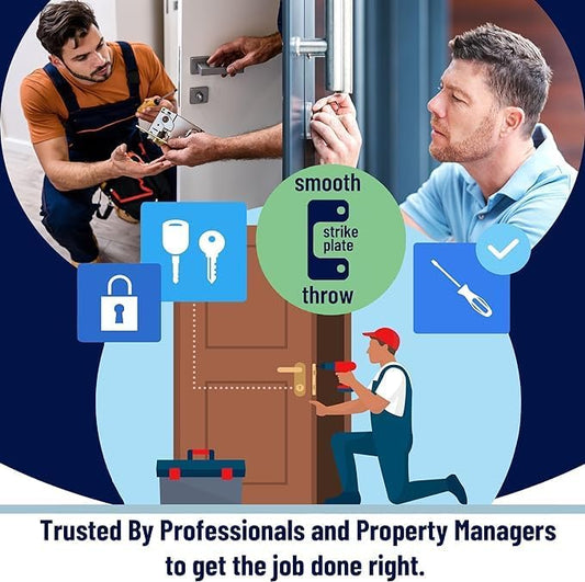 Oversized (1.125" x 2.75") Adjustable Strike Plate for Exterior Doors - Larger Horizontal & Vertical Hole for Deadbolts & Electronic Locks - Home & Rental Security - Property Managers Favorite