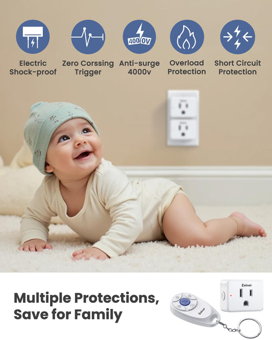 Zoiinet Mini 3-Gang Remote Control Outlet Plug Switches, Mini Key Design, Expandable Wireless Light Switches, No Wiring No WiFi, 300 ft, 15A/1500W, for Household Appliances