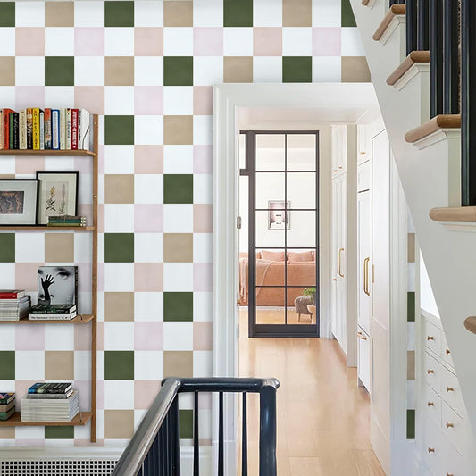 Ismoon Wall Paper Peel and Stick Modern Plaid Wallpaper 17.3" x 78.7" Green and White Mosaic Checkered Wallpaper Geometric Contact Paper for Bathroom Cabinets and Drawers Decor