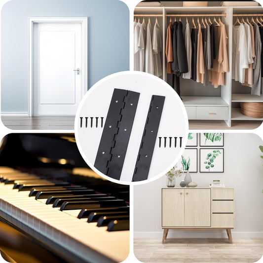 AurDo 2Pcs 12inch Black Heavy Duty Continuous&Piano Hinges,1.2" Open Width Stainless Steel Piano Hinge with Holes and Screws,Working for Wood Box,Wood Furniture,Piano Cabinets.