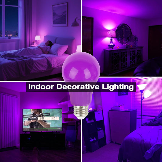 Purple Light Bulbs 4 Pack - Colored Light Bulb Indoor Halloween Decor 9W (60W Equivalent) A19 E26 Base Led Lightbulbs for Outdoor Porch, Bedroom, Christmas Party Decoration, Holiday Lighting (Purple)