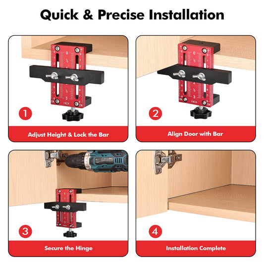 Draxzor Cabinet Door Mounting Jig, Premium Aluminium Alloy Cabinet Door Installation Positioner, Adjustable Positioning Tool for Easy Door Alignment on Frameless & Face Frame Cabinets