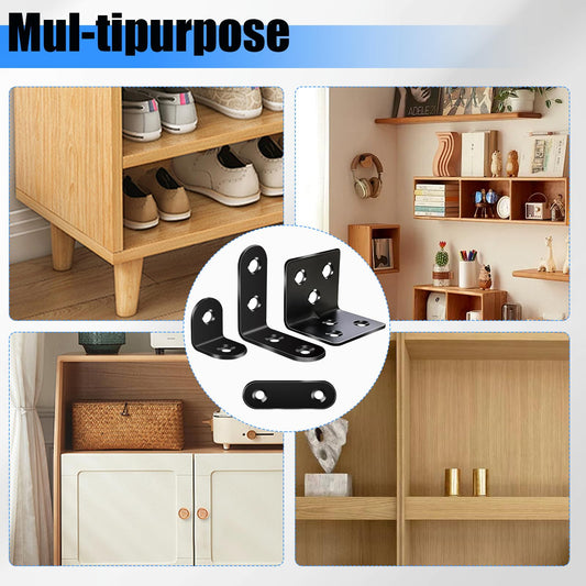 mxuteuk 96PCS L Brackets for Shelves & Flat Plate Straight Bracket,Black Stainless Steel Shelf Brackets,L Shape Heavy Duty Metal Corner Brace for Wood Furniture Cabinet Chair (0.78,1.2,1.57,1.97inch)