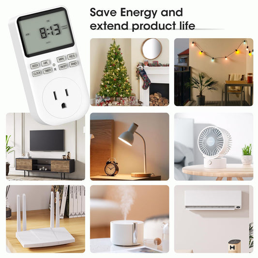 Plug in Digital Oulet Timer Switch 7 Day / 24 Hour Weekly Daily Programmable with Random Security Mode for Home Appliances and Indoor(125V,15A,1875W) 1 Pack