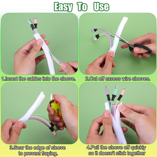 AIERSA 13FT Cord Protectors from Pets No Chew,Wire Protector for Cats,Rabbits,Dogs,White Durable Braided Cord Cover,Cable Sleeves for Cord Management and Pet Protection