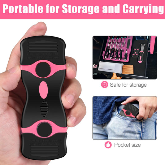 NECAMOCU 4 Pack Razor Blade Scraper, Premium Cleaning Scraper Tool with 50 PCS Metal & Plastic Razor Blades, Multi-Purpose Glass Scraper for Windows, Sticker, Decals, Cooktop, Paint Removal (Pink)