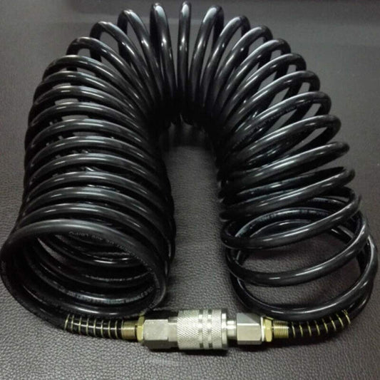 25ft Air Compressor Hose with Bend Restrictor and 1/4 Quick Coupler - Coiled Flexible Air Hose with Solid Copper Connectors