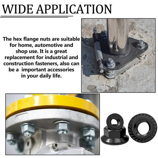 Aienxn 136PCS 6 Metric Sizes Black Carbon Steel Hex Flange Nuts Assortment Kit -M3, M4, M5, M6, M8, M10