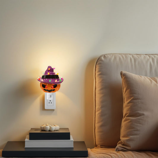 Lasumora Halloween Decorations, Ceramic Pumpkin in Witch Hat Plug-in Night Light, Vintage Halloween Decorative Night Light with 17 Bulbs, Halloween Decor Indoor for Party Gift Bedroom & Hallway