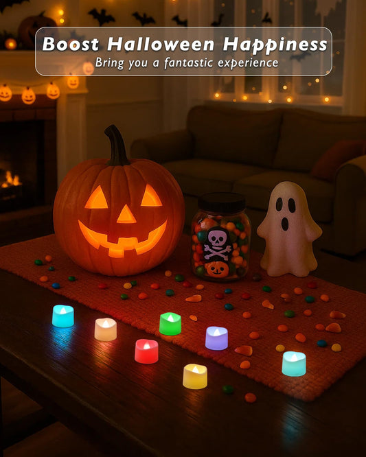 Raycare 7-Color Changing Battery Operated Tea Lights, 200+Hour Electric Flameless Candles, Realistic Votive LED Tea Lights for Wedding Party Halloween Thanksgiving Christmas Decorations Pack of 24