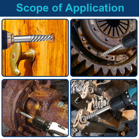 DOAHO 6 Pcs Spiral Screw Extractor Set, Cr-Mo Bolt Extractor Kit, Easy Out Broken Bolt Extractor Kit, Spiral Flute Bolt Remover Set for Remove Broken Bolts, Damaged Screws