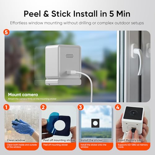 Window Camera, 3MP 2K Home Security Camera for Indoor Glass Monitoring, 2.4GHz & 5GHz WiFi Wireless, AI Color Night Vision, Human & Motion Detection, 24/7 Recording, Easy & Quick Window Mount (1 Pack)