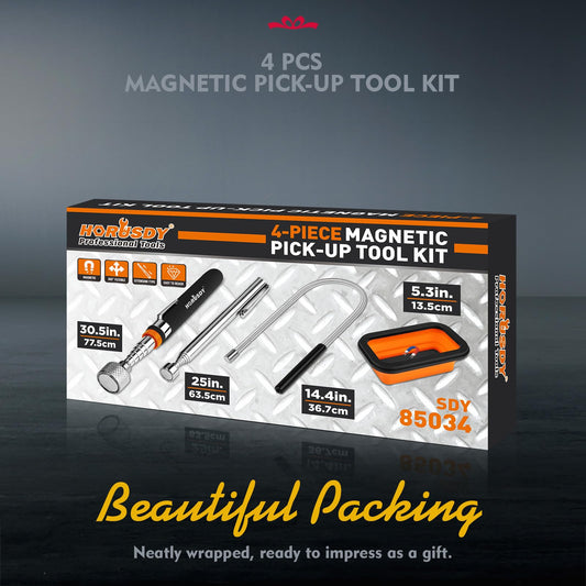 HORUSDY 4 - PIECE Magnetic Pickup Tools Kit | Extendable Telescoping Magnet Pick Up Tool Set 7-30.5” & 5-25” | Bend-It Flexible Magnetic Sweeper | Collapsible Parts Tray for Garage Workshop Yard