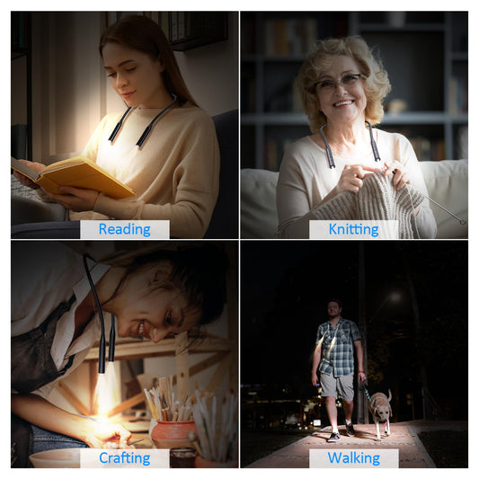 2 Pack Neck Book Lights, 3 Colors & 3 Brightness Levels, Flexible 380° Neck Light Rechargeable, LED Reading Lights for Books in Bed, 80 Hrs Lasting, Perfect for Reading, Knitting, Crafts, Repairs