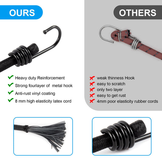 Small Bungee Cord with Hooks 6 Inch-10 PackBlack Bungee Cords Hooks Heavy Duty Outdoor,8 MM Diameter Bungee Tie Down Straps for Camping, Tarps, Tents, Hiking,Hunting,Trucks and Boats