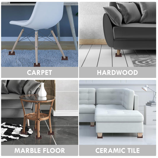 Non Slip Furniture Pads, 2.5” Round Rubber Caster Cups, Anti-Slip Gripper, Anti Slide Furniture Feet Floor Protectors for Bed Couch Stoppers - Brown, 4 Pack