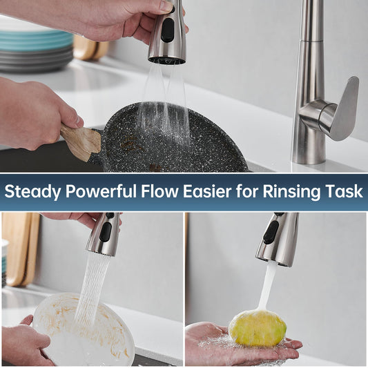 Pull Down Kitchen Faucet Head Replacement,3 Function Kitchen Faucet Head High Pressure Kitchen Sink Sprayer Replacement with 11Adapters Compatible with American Standard, Brushed Nickel
