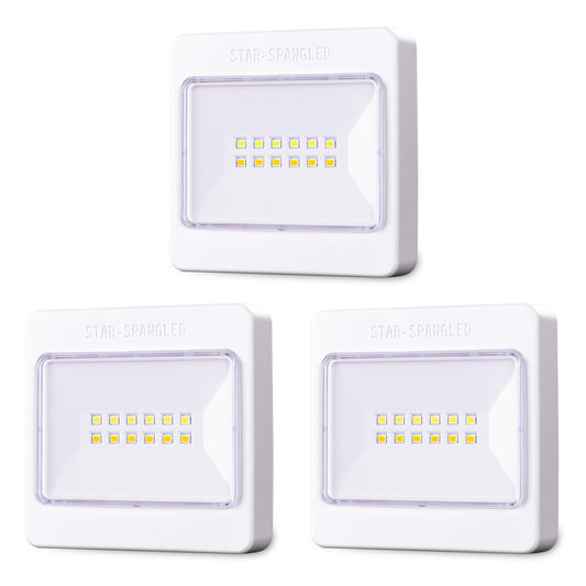 STAR-SPANGLED 3 Pack 3.7” Dimmable Push Tap Lights, Stick on LED Touch Lights AA Battery Operated, 3 Color Modes Sticky Button Lamps for Classroom, Kitchen, Under Cabinet, Closet