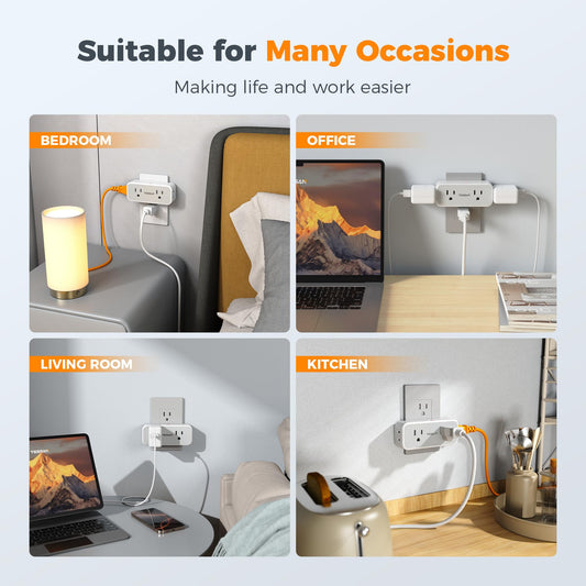 Outlet Extender Surge Protector, TESSAN Multi Wall Plug with 4 AC Electrical Outlets, 3 Sided Multiple Plug Expander, 1875W Max, Power Splitter 3 Prong Adapter for Home Bathroom Office Dorm Room