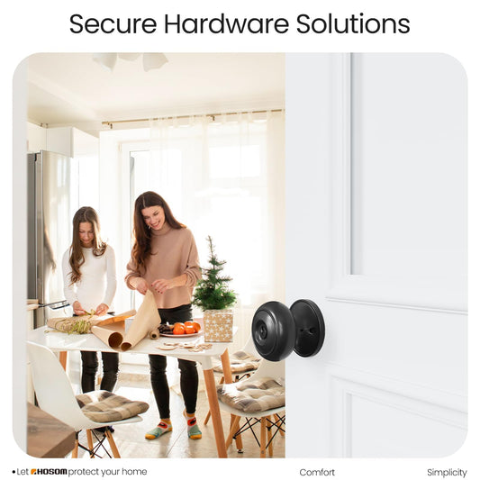 HOSOM Door Knob with Lock and Key, Keyed Entry Door Knob, Exterior and Interior Door Lock for Front Door Commercial and Residential Area, Entry Door Handle for Bedroom and Bathroom, Matte Black