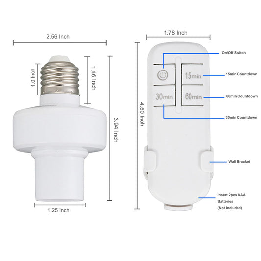 Remote Control Light Socket,Wireless Light Switch Kit with Timer,E26 E27 Bulb Lamp Holder with Remote Control,No Wiring Wall Mounted Controller Switch for Attic,Garage,Stairwell(2 Pack)