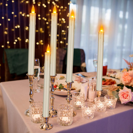 wemarry Flameless Taper Candles Realistic Flickering Flame, Battery Operated, Remote Control with Timer, Safe for Kids & Pets, Ivory, 10-Inch, Pack of 6 Ideal for Home, Weddings & Parties
