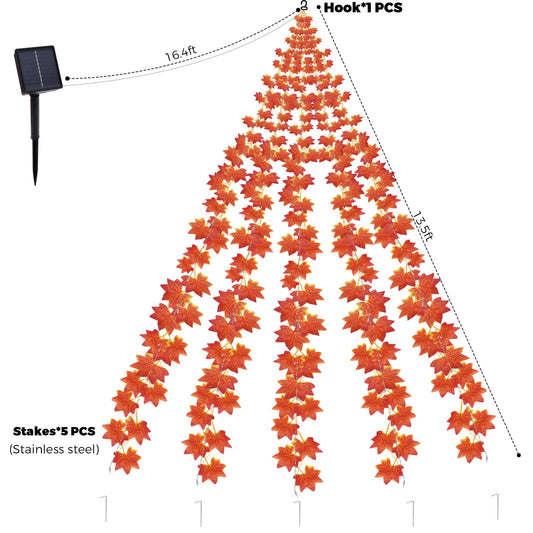 13.5FT*5 Branches Maple Leaf with Fairy Lights, Solar Powered Autumn Fall Decor String Lights, 8 Modes Waterproof Triangular Thanksgiving Decorations for Eaves, Tree, Patio, Garden, Yard (Maple Leaf)