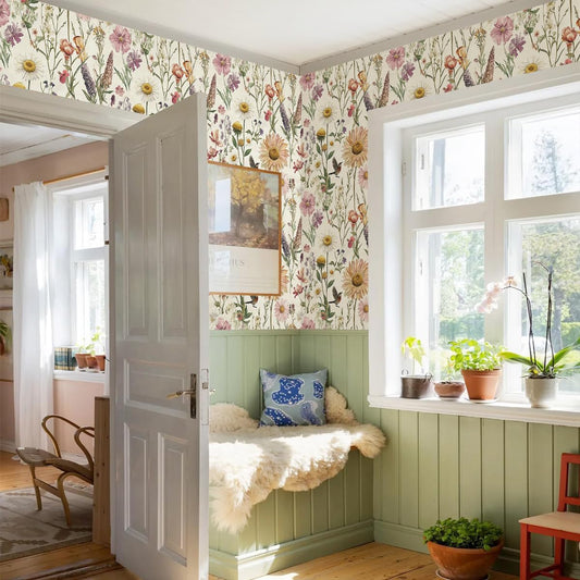 Livebor Floral Peel and Stick Wallpaper Floral Bird Contact Paper 16.9inch x 118.1inch Vintage Flower Wallpaper Peel and Stick Self Adhesive Flower Contact Paper Botanical Decor for Bathroom Vinyl