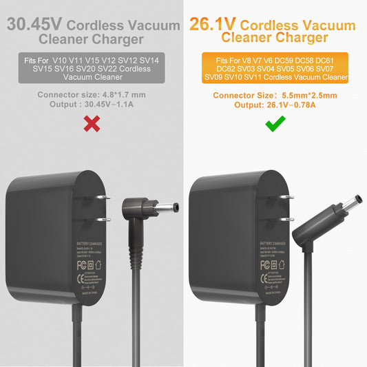 26.1V Vacuum Charger Compatible with Dyson V8 V7 V6 DC59 DC58 DC61 DC62 SV03 SV04 SV05 SV06 SV07 SV09 SV10 SV11 Animal Motorhead Absolute Trigger Cordless Vacuum Cleaner 967813-02 205720-02 Power Cord