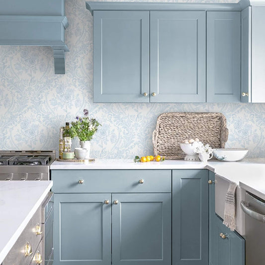 Ismoon Peel and Stick Wallpaper Vintage Floral Contact Paper Boho Watercolor Blue Damask Wallpaper Textured Removable Self Adhesive Vinyl Wall Paper for Bedroom, 17.3 in X 6.5 ft