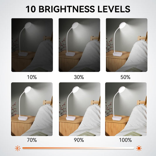Battery Desk Lamp Light,Black,Cordless desk lamp rechargeable,Small gooseneck lamp for desk,400LM LED Light,3 Colors (White/Warm White/Warm),Adjustable brightness,360° Hose,20 LED for Bedroom&Reading
