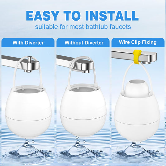 Bath Filter for Tub, Bathtub Water Filter with Overflow, 8000 Gallons Faucet Filter Filtration|Removes Chlorine, Fluoride & Contaminants|Hard Water Softener|Protects Skin, Hair| Easy Install