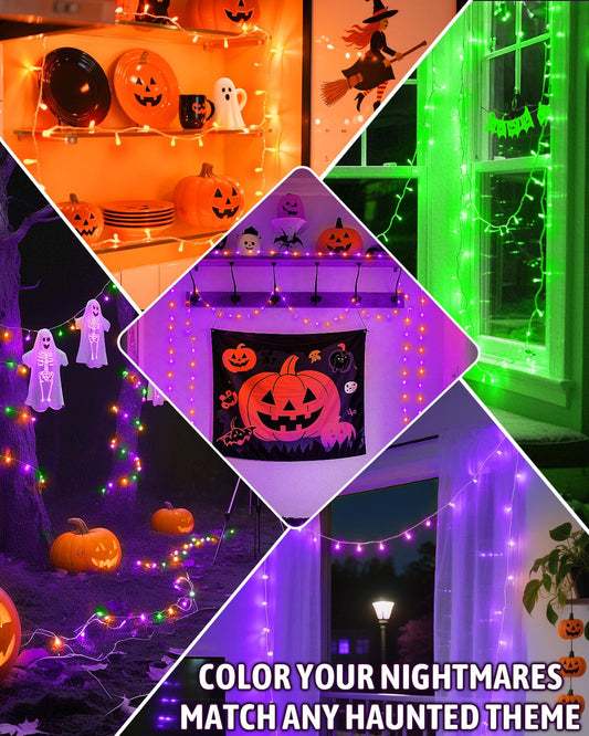Kelumi Halloween String Lights Battery Operated, Orange Lights for with Timer Waterproof 16.4ft 50 LED Halloween Decorations for Outdoor Indoor Patio Party Garden Yard Decor 2 Packs