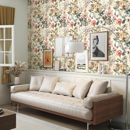 Jeweluck Floral Wallpaper Peel and Stick Vintage Floral Contact Paper Peel and Stick 16.9”x118.1” Poppy Flower Wallpaper Boho Leaf Removable Self Adhesive Wall Paper for Cabinets Bedroom Decorative