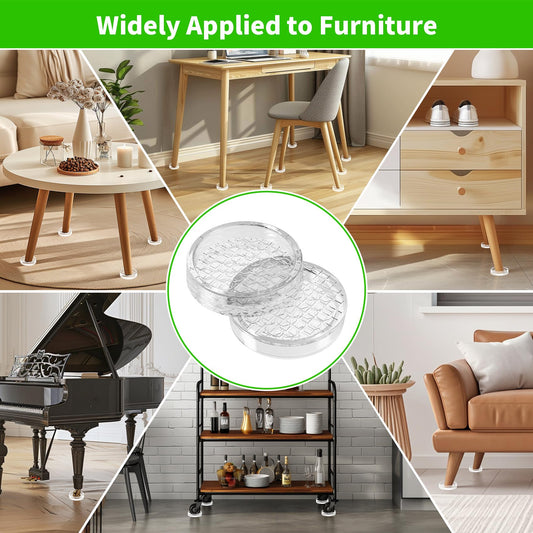 1.6"x1.6" Round Rubber Furniture Caster Cups, 16 PCS Chair Coasters for Carpet - Clear Non Slip Furniture Pads with Grip, Carpet Protector for Furniture Legs - Protect Any Flooring