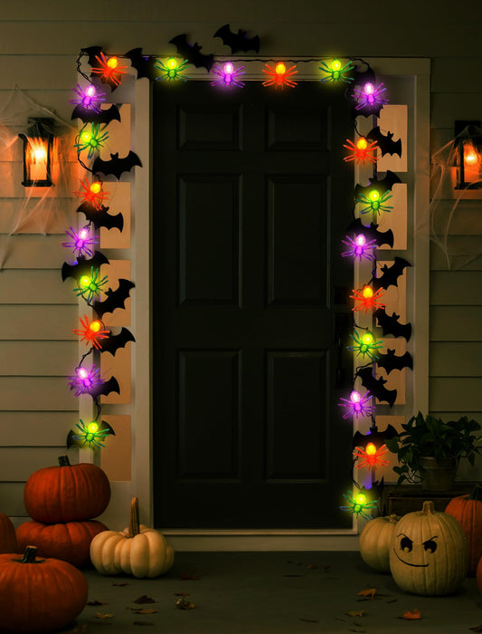 Halloween Spider String Lights Outdoor, 8.5Ft Halloween Decorations Lights with 10 LED Orange Green Purple Spider Lights, Hanging Multicolor Spider Light for Indoor Window Patio Curtain Holiday Decor