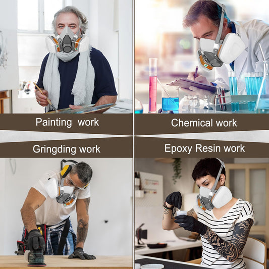 LMINHAN Respirator Mask, Grey Chemical Respirator Mask with 6001 Filters, Respirtaor mask for Epoxy Resin, Paint Respirator