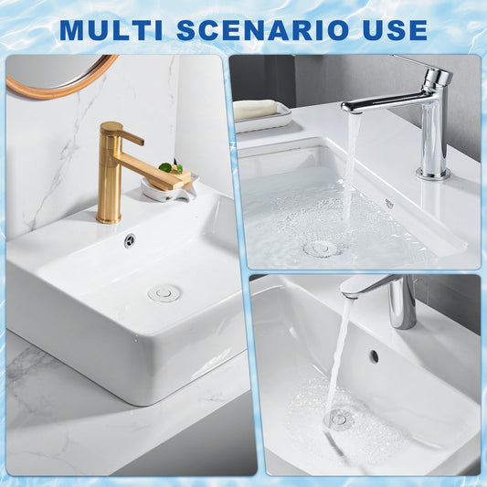 OAOrz Upgraded Bathroom Sink Stopper, Sink Drain Strainer for 1.1-1.45 Inch, Brass Bullet Core, All Metal Cover, Pop Up Stainless Steel Drain Filter with Basket Hair Catcher, Round Design