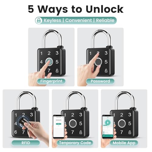 Fingerprint Padlock, Fingerprint/Password/RFID/App Unlock, USB-C Rechargeable Waterproof Biometric Padlock for Gym Locker, School Locker, Backyard Gate, Shed, Fence Door